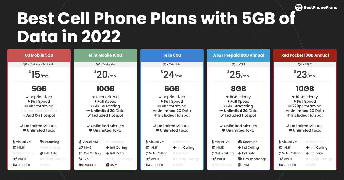 International data notes: International data roaming is available as an add-on. You get unlimited talk, text, and 5GB of data in supported countries. The add-on is $35 for 7 days.
