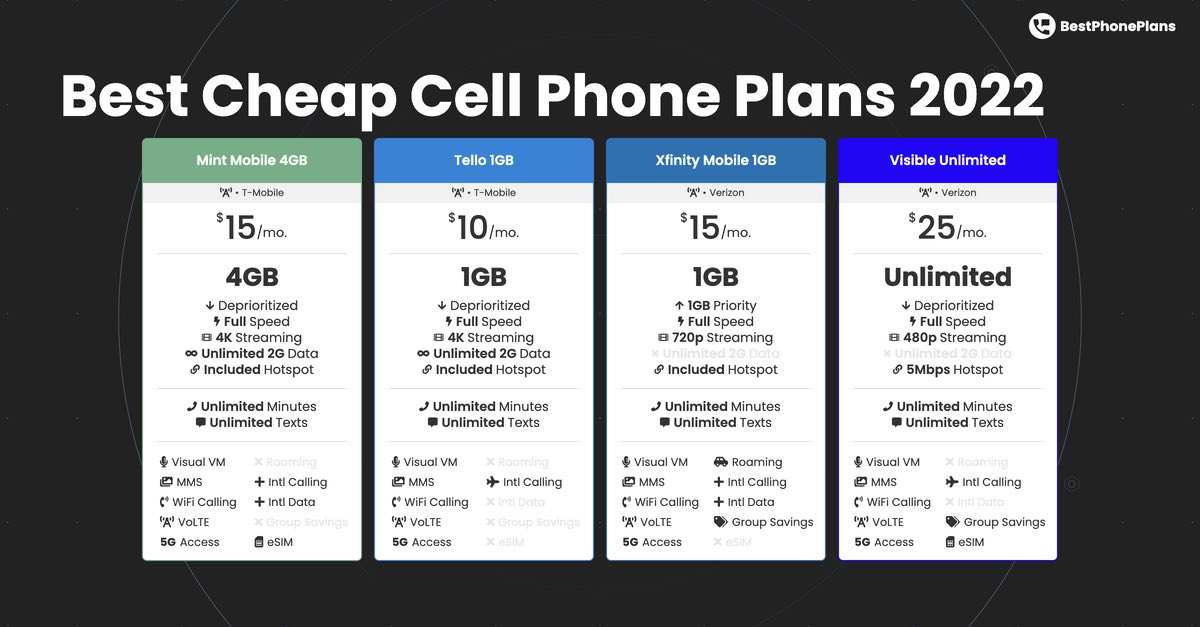 Mint Mobile earns our top pick for the best cheap cell phone plan because of its combination of affordability and features.